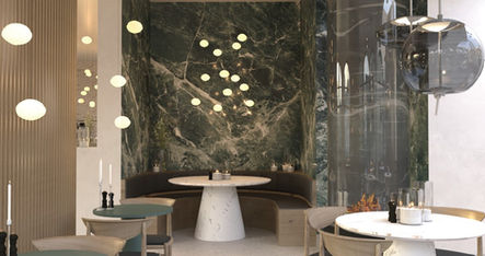 Her har vi skabt rammerne for en gourmetoplevelse ud over det sædvanlige. Indretningen er designet til at understøtte restaurantens luksuriøse univers, hvor æstetik, komfort og atmosfære går hånd i hånd. Akustikken er nøje gennemtænkt, så gæsterne kan nyde både maden og samtalen i rolige omgivelser. Materialer, belysning og møblering er udvalgt med fokus på at skabe en helhedsoplevelse, hvor sanselighed og funktion smelter sammen – præcis som på tallerkenen.